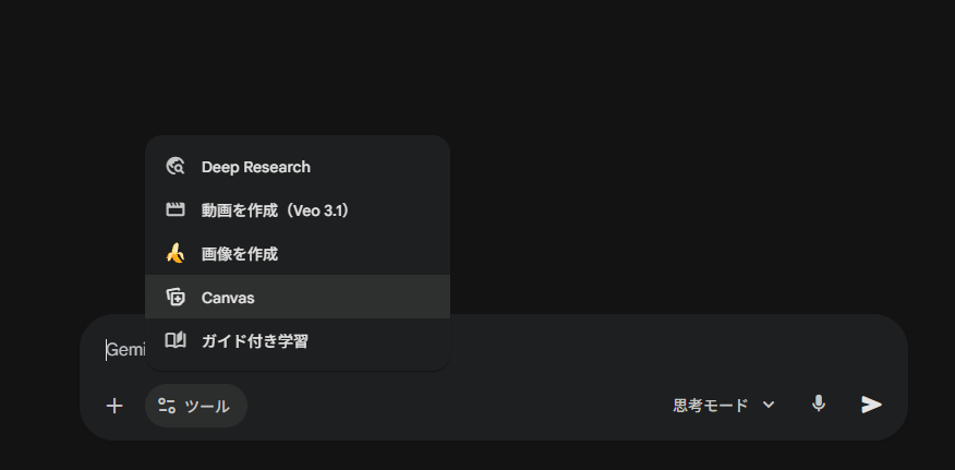1. Gemini Canvasを起動させる指示