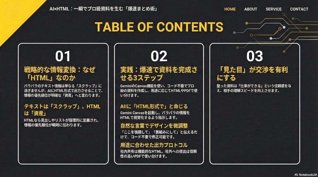 ミッションの核心:AI×HTMLで「爆速・美・まとめ」を実現する